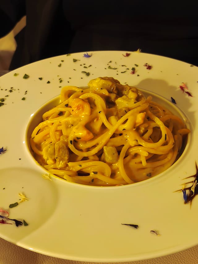 5.5/10Smell in the restaurant was not pleasent, food quality was not good. Fish was too salty and pasta was undercooked and sauce was watery with almost no taste