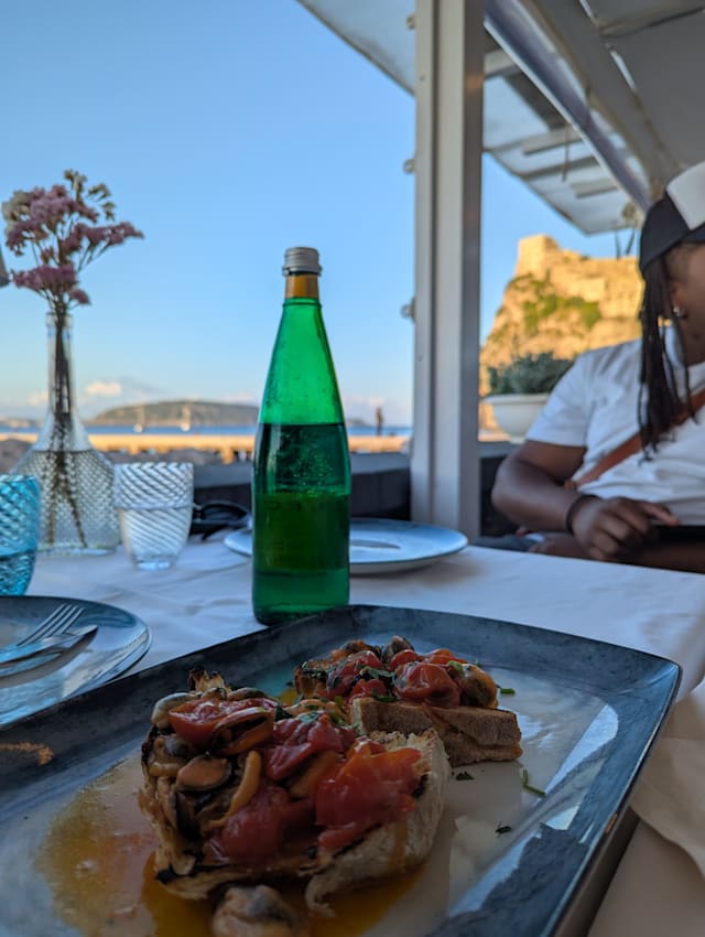 10/10We had a beautiful view overlooking the castle, the food was delicious and recommended wine from Ischia was lovely. We found the waitstaff gracious and friendly. Would absolutely go again!