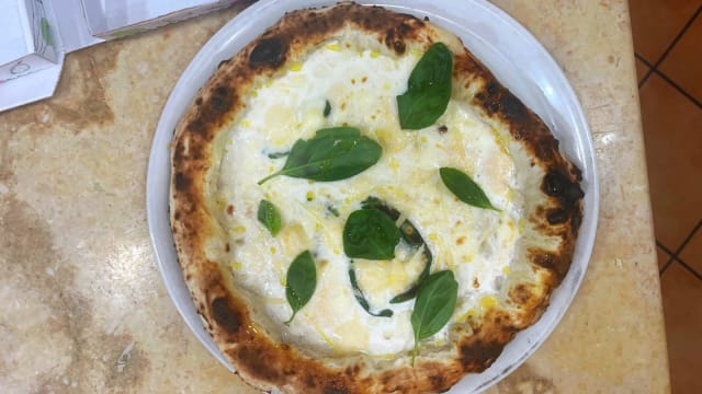 Fior di latte, ricotta, salame napoli, prosciutto cotto, olio evo e basilico