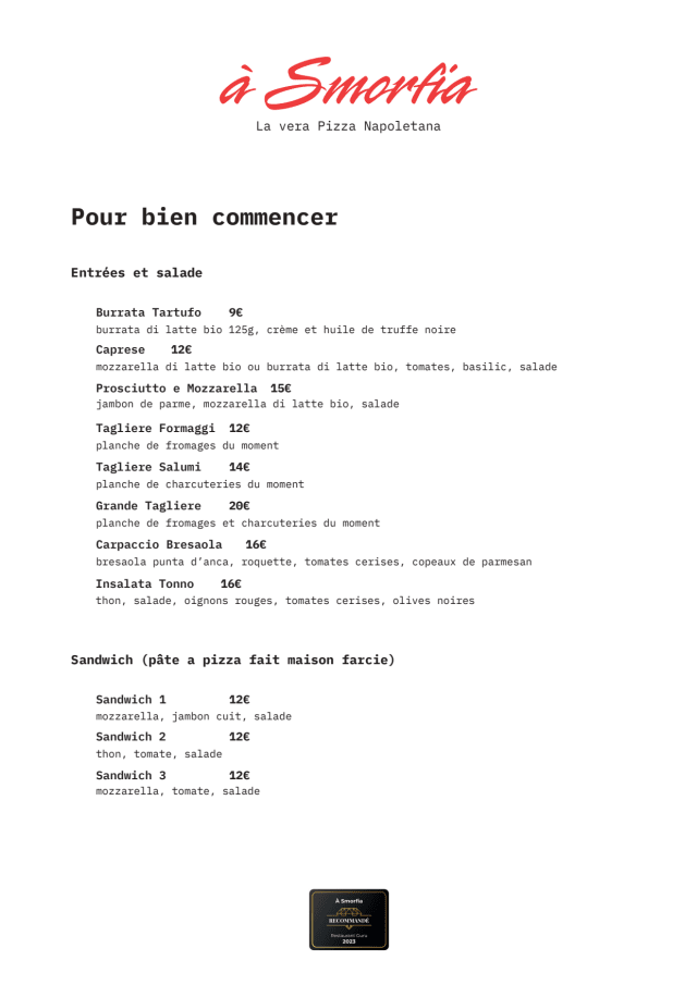 10/10I’m Italian and It has been a long time that I’m living in Paris and I tried many pizzerias. Finally I find “A Smorfia”: the best one in town.