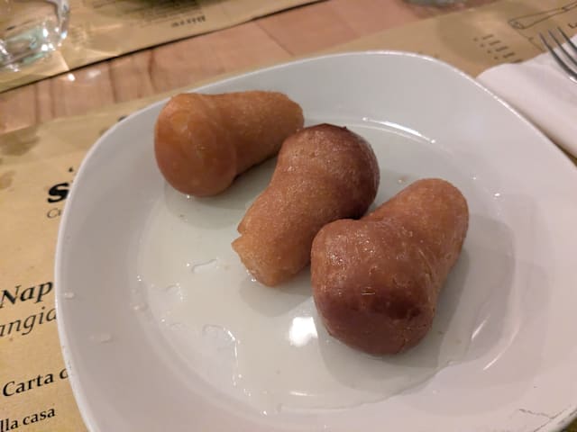 8.5/10The starter was great, especially the parmigiana di zucchine. For the main, both the meat balls and the octopus were a little bit overcooked, and the octopus was probably frozen, though the sauce was amazing. Considering the cost was low, their cons were totally acceptable (well it’s not a seafood restaurant next to the sea).