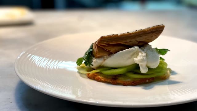 Crema di zucchine, provola di agerola zucchine infornate, cacio cavallo grattuggiato, olio evo