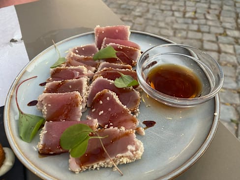 9.5/10Another great meal at A Taska. The honey and goats cheese and prawn starters really good and the signature A Taska burger excellent. Who doesn't love chocolate mousse to finish and all accompanied by a lovely local white wine.