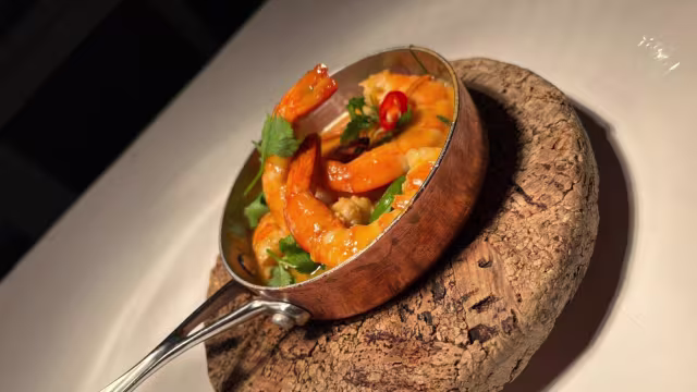 - Camarão salteado, chilly e manjericão