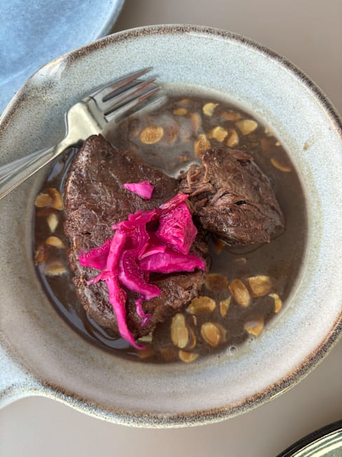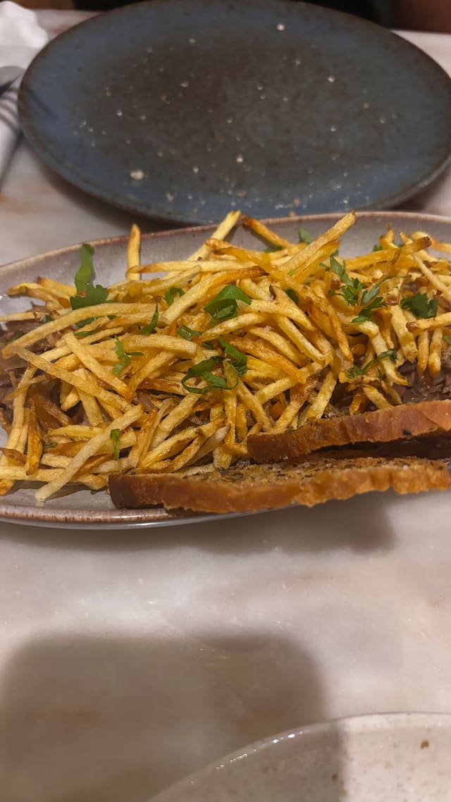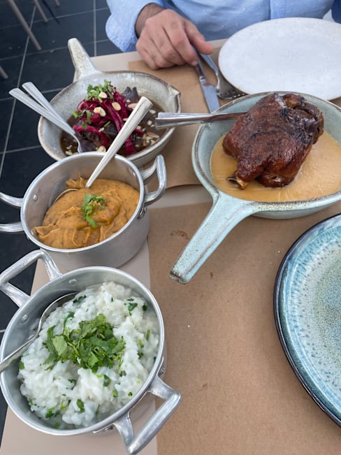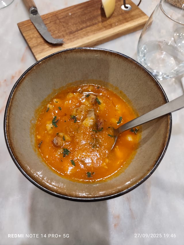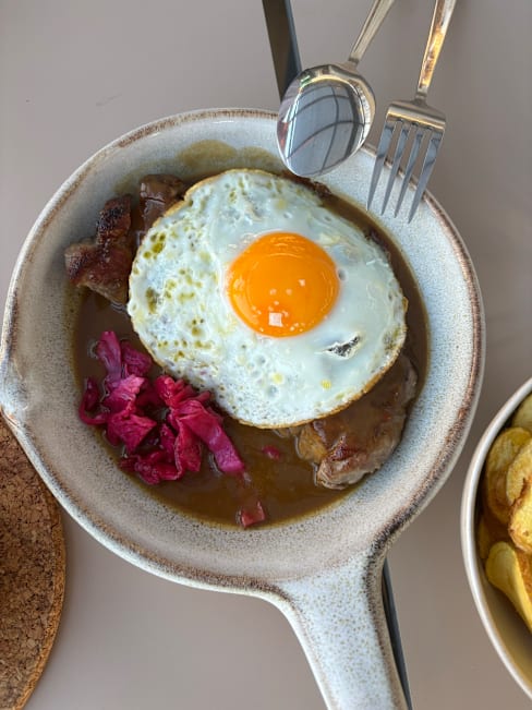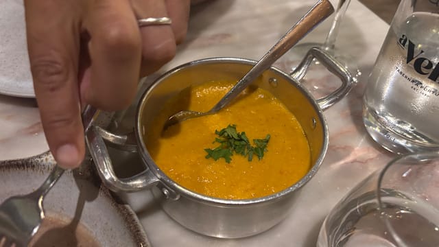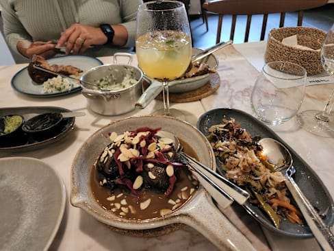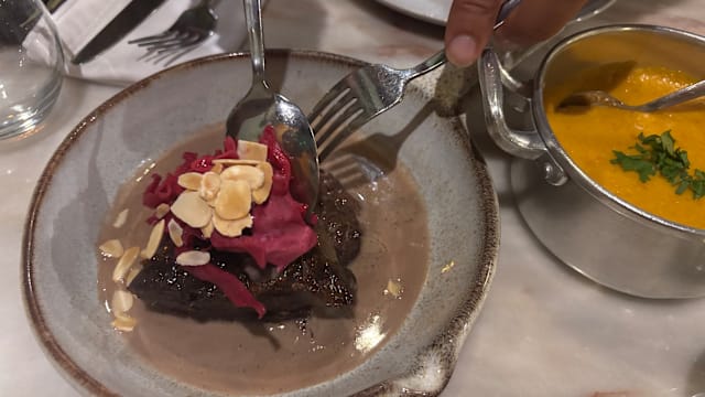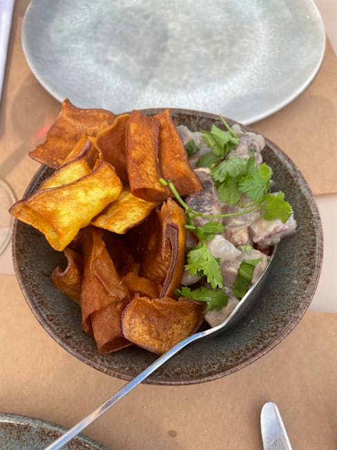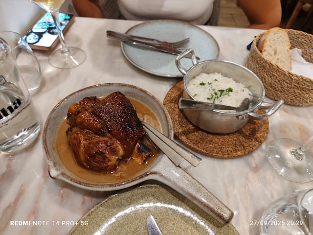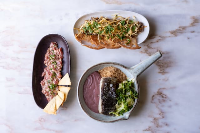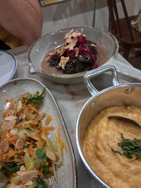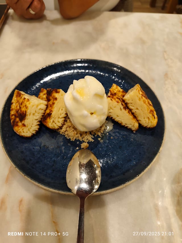 6.5/10The main entrance and interiors (including terrace) were charming and enticing. However the ambience was disappointing; music would have helped especially when there are few customers. The waitress didn’t seem to appreciate that there was very quiet playing music inside but nothing on the terrace. The entree and our starters (veal tartare and partridge) were tasty. The white wine we chose lovely and properly chilled. Sadly, the crumbed fried fish was over done. The baked cod was tasty however the presentation on the large bed could have been a bit more aesthetic pleasing. Tomato rice was tasty. The restaurant is trying hard and should be commended but didn’t quite hit the mark for us.