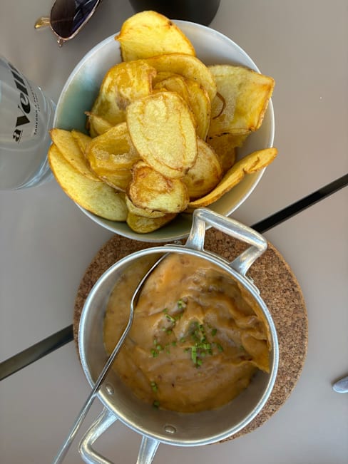 7.5/10Nice service, good simple food, a small menu, and a selection of non-alcoholic beverages. The view is really good only on one table inside the restaurant, the rest are closed by a wall.