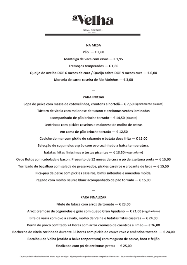 A truly hidden gem in the Portuguese country side. A Vehla brings traditional dishes to life with a slightly modern take. The veal cheeks are straight from heaven!!! We tried so many different dishes and wines over the course of nearly 4 hours and in the end we had desert and a port from Madeira that was divine! I can't recommend A Velha enough, I'm tempted to fly back to Portugal just to eat here again.
