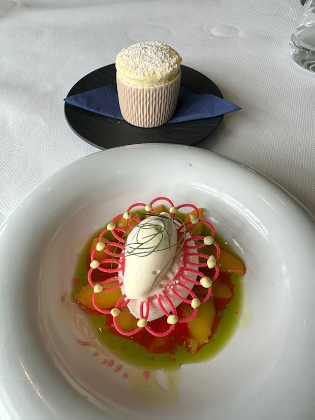 Het business lunch menu bestaat uit: bruisend aperitief, tafel water, 2 gerechten, 2 bijpassende wijnen of een alcoholvrij alternatief met tot slot, koffie of thee met friandises.