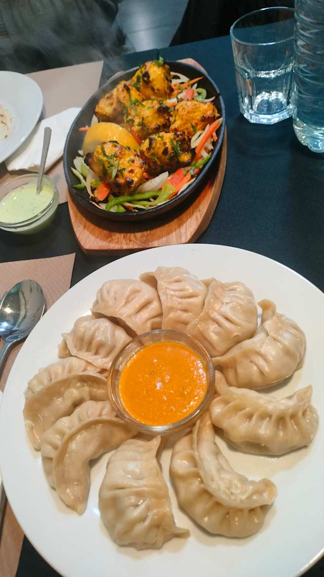 - Momo al vapor bañado en salsa picante de chile con cebolla, ajo y pimientos.