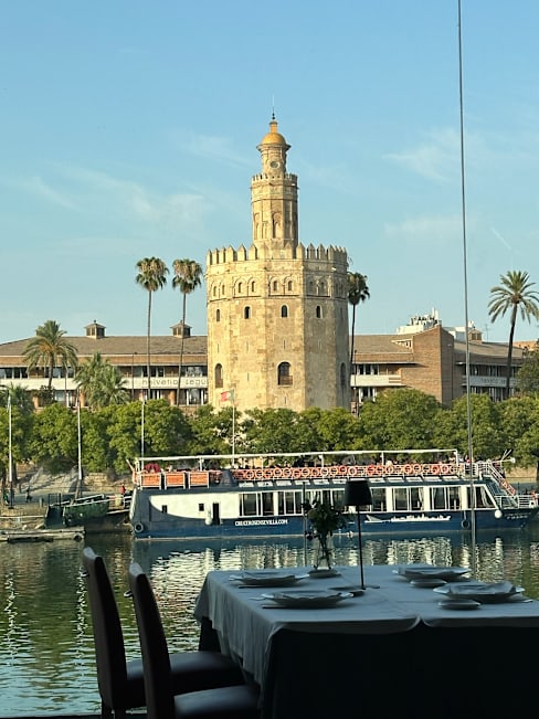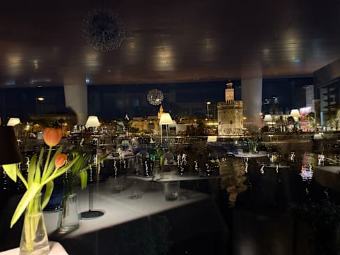 10/10The view was beautiful as we had window seats with a view overlooking the river with the cathedral tower, golden tower and a Triana bridge all lit up in the night. Our foods presentation and taste was spectacular. The staff are all very friendly and accommodating. I would highly recommend to everyone visiting the area. We ordered the crab and tuna starter, 35 aged serlion and bass for our mains, with the coffee disaster and chocolate desserts, accompanied with a bottle of locally crafted dry wine. The chef also provided us with a starting and finishing apitisers. Unfortunately I didn't take any photos to share as we were fully engaged with the ambience. I can understand that some would find this place slightly pricey compared to the local restaurants we have visited, but don't the that put you off, as the entire night only cost €200. It could cost more as they have a wine list that even I had to take a second look at. 10,000, but most of the wines range from £30 to £90.