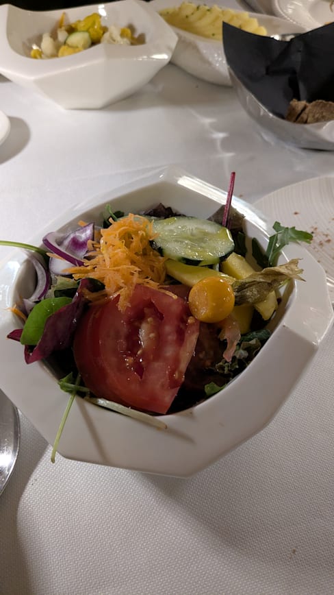 2/10Booked this restaurant to celebrate a 25th anniversary. It started off ok...shown too our seats, ordered cocktails...while looking at menu. We were asked if we needed a couple of minutes too decide what we wanted...said yes. 20+ minutes later we were attended to. Lady took order without writing anything down. As expected the order was wrong...ordered 2 bread starters, recieved 1. Ordered goats cheese plater...was dry to eat. Before we finished bread it was whisked away by a waiter who seemed to have an attitude. Main course arrived...Monk fish which was bony and cold. Steak which was rare despite requesting well done. Asked for mash with steak..recieved boiled potatoes. When we mentioned this to " attitute" waiter he snatched items away without so much as an apology. By the they arrived back with fish, still no mash, all other side dishes had gone cold. When we complained to " attitude" man he abrubtly cleared all items from the table. Ive run out space to type the rest....just avoid!