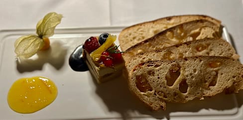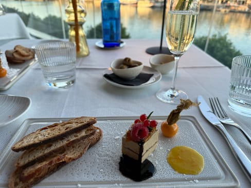 10/10Sitting overlooking the river under blue skies was amazing, while eating really good food. It was a special occasion so we splurged on one of the tasting menus, which didn't disappoint. Service was excellent and nicely paced.
