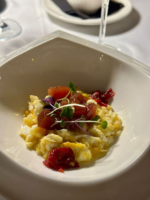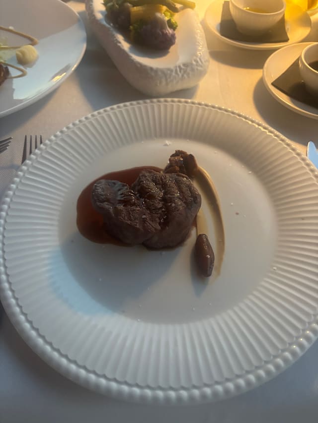8.5/10+1We enjoyed an absolutely beautiful table, and were delighted to be seated where we were. Gorgeous, gorgeous setting. The tasting menu was quite good, with a fabulous sweet and savory foie first course, followed by a delicious ceviche, then, OMG, an egg, tuna and black truffle dish. Fabulous! Next was a lovely sea bass, although with more than a few bones. The final savory was a pork course…. ~80% fat. I couldn’t eat much. Dessert was a whimsical play on creamy coffee pop-rocks. The service was kind, but not highly attentive (had to ask for wine and went with any empty glass for a couple courses until I spoke up), but courses were served and not rushed. Because of the decor, setting, and the standout third course, we definitely would return and certainly recommend. A few faults made it a non-Michelin Star-worthy experience, but could be improved to make it so, with such promise to get there.