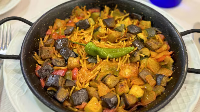 - Fideada de sobrasada, pimientos de padrón y queso ahumado