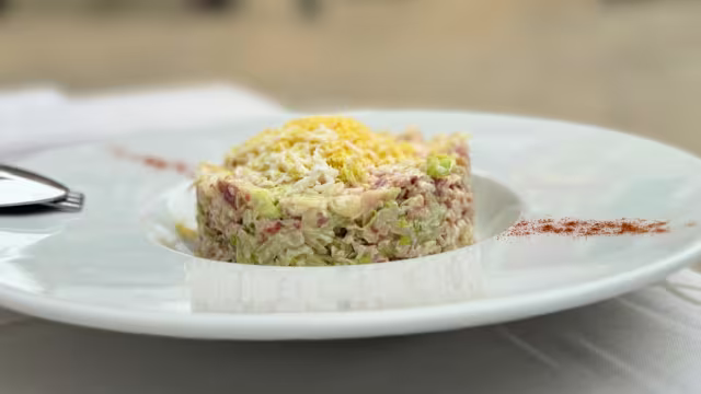- Consomé de tuétano de jamón con picada de olivas verdes