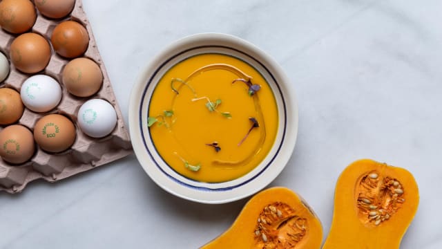 Pan bao frito relleno de setas eco con crema fría de potimarron y miso (2u)
