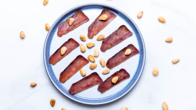 Tartar de atún rojo con yema curada y chips de garbanzo