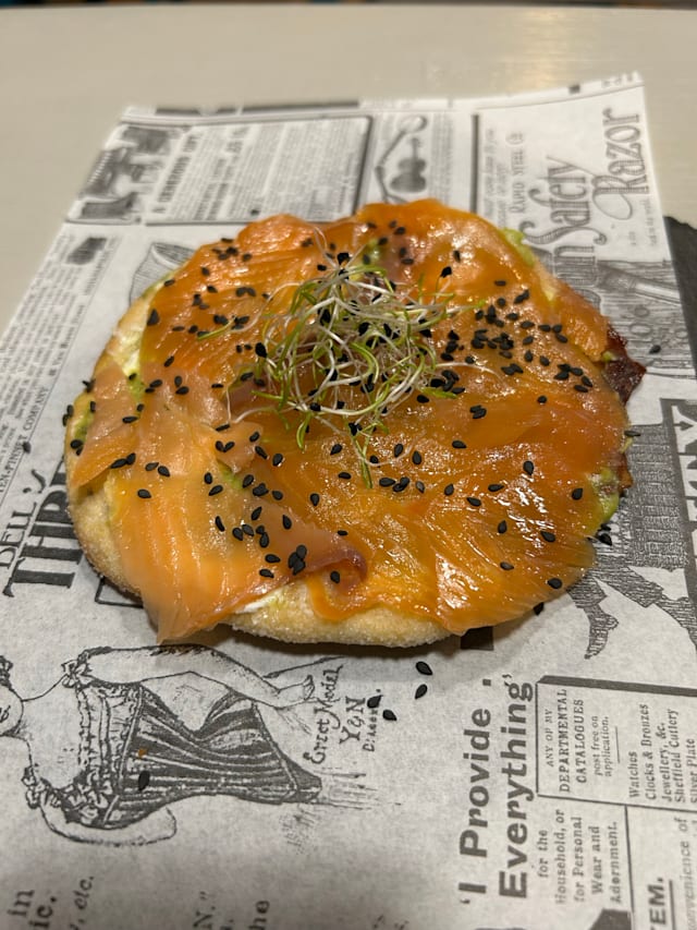 7/10Lovely fresh entrance decor on arrival which we chose to sit outside. Staff were nice & attentive. Burrata was tasty. Crushed eggs with chorizo & french fries was minced/shredded with two fried eggs on top. Seafood noodles was flavoursome & ideal is you had a starter. Dry white wine was nice. Table could have been pre set up with glasses, condiments etc but not too much of a bother. Overall happy