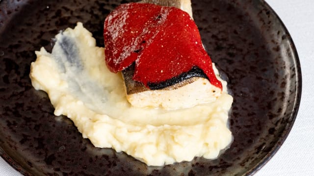Bacalao a la brasa con pimientos de piquillo a la leña