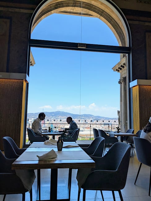 9.5/10Best spot for a break from the heat and crowds of Barcelona in the summer. Amazing view, DELICIOUS bread and cocktails, wonderful orange and fennel salad, and LOVED the music playlist. A leisurely 2-hr+ lunch.