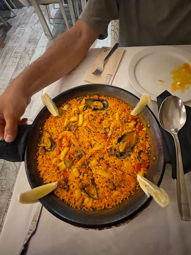 10/10Very Pleasant staff &inside interior , We ordered Black Ink Paella was really Yummy ( Squid 🦑 were so tender & juicy) Strongly recommend