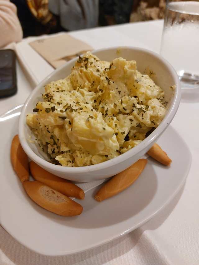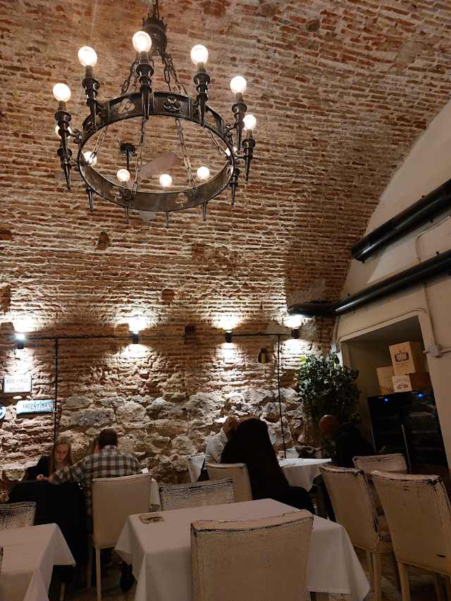 6.5/10The paella, octopus and ravioli were very average. The chicken schnitzel was better, but with a completely inedible sauce. The interior has interesting vaulted ceilings. But everything is dusty and gives the impression of an abandoned house.