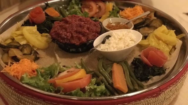 2.5/10I had an offer to use my yums for 35chf off the entire bill, with NO RESTRICTIONS. Another couple next to us booked with the fork also with the 50% off a la carte menu(NO SET Menus or drinks included in this offer) yet the owner told us that for out booking we have ONLY 1choice, Menu Degustation for 39chf per person. This is the ONLY thing he offers when you book with the fork and want to avail of an offer. This absolutely ruined our evening and to collect yums just to use them with a scam like this is awful. Thank you for nothing Abyssinia. Make clear rules and obey them or do not be on the fork.