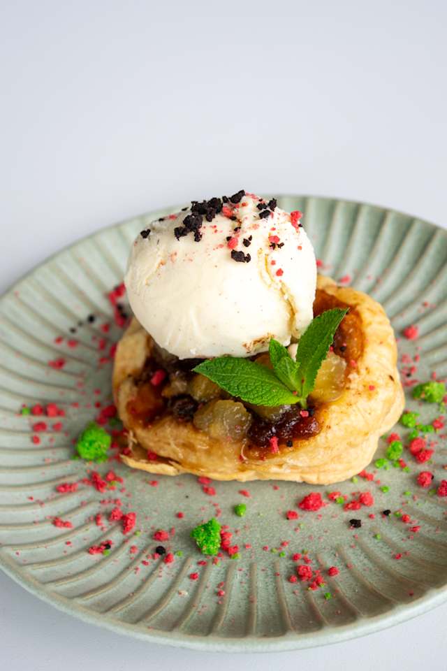 - Sobre una base de focaccia con salsa tártara y mayonesa cítrica a la menta