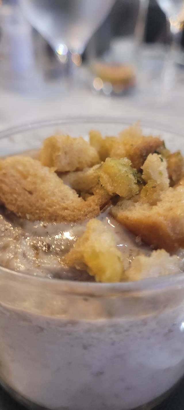 - St Marcellin lardé et rôti, crème de champignons à l'huile de truffe