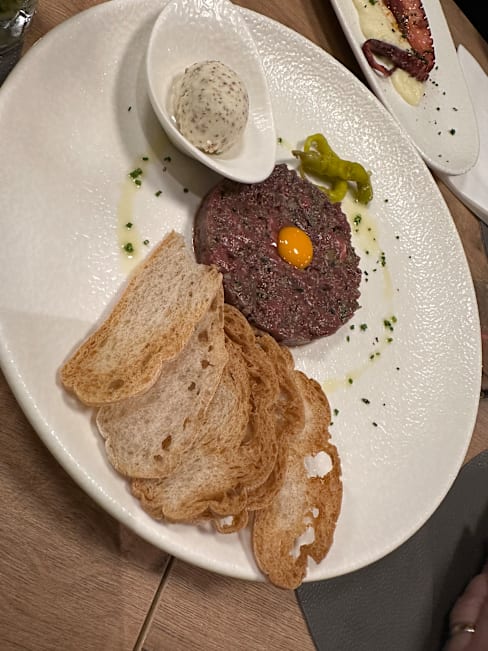 9/10Very good food and wine! We chose tuna tataki and meat with fries, everything delicious! The dessert was cheese pie, so special! I recommend The ambience is very calm and cozy