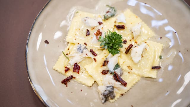 la nostra pasta fresca al tartufo di stagione e fonduta di pecorino della Maremma toscana