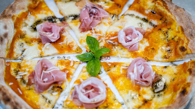 farcitura con 3 ingredienti a scelta: pomodoro, fiordilatte, burrata, rucola, verdure grigliate, prosciutto cotto, prosciutto crudo, mortadella, grana padano.