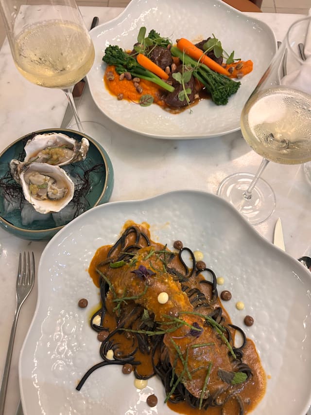 10/10+2This restaurant is so good we ended up going two nights in a row. The oysters were incredible, along with everything else we tried. The wait staff is wonderful - very attentive (thank you José!). They also have a pastelaria next door which we are going to try. A definite must if you are in the Albufeira region.