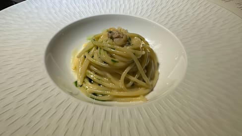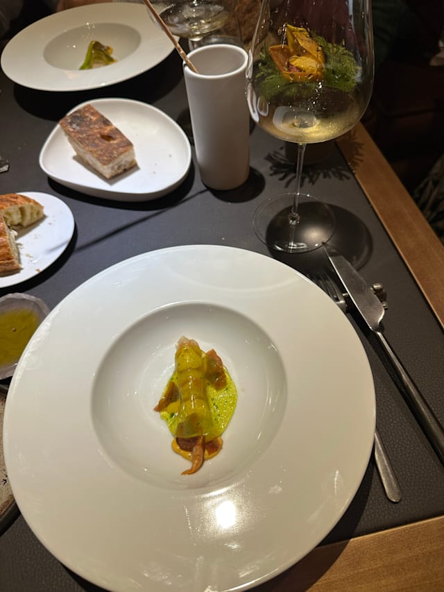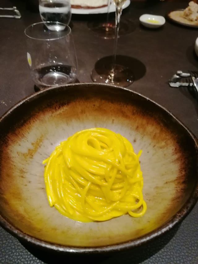 6/10In my view, this was the most overpriced venue we have been to. The “sea spaghettoni” were said to be made of five different sauces combined to one. That, however, let the tomato base of one of the sauces merely dominated the final sauce. Hence, it was spaghetti with tomato sauce. The wine pairing comprised some truly good wines. But two bottles were emptied in our glasses so that a good part of the small portion contained sediments. Though Argon gas can preserve the wine for some time from oxidation, there is a limit and I think one of the wines already lost taste. Also, it isn’t usually a good idea to serve an expensive complex red wine with a spicy dish. On the positive side, the interior was splendid, waiters were nice, friendly and attentive. Our experience wasn’t bad, but simply didn’t match expectations for a restaurant that is highly rated, recommended by michelin and charges prices in the upper range.