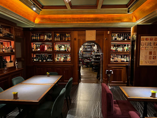 8.5/10Excellent service and impressive wine bottle selection on this restaurant walls which look so amazing
