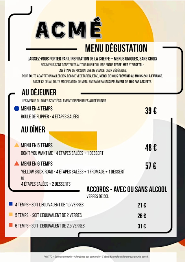 10/10+5We had a remarkable New Years Eve dinner at the acme restaurant. Great food, very friendly service, fair price. We will definitely be back during our next Paris visit. Very recommendable restaurant!