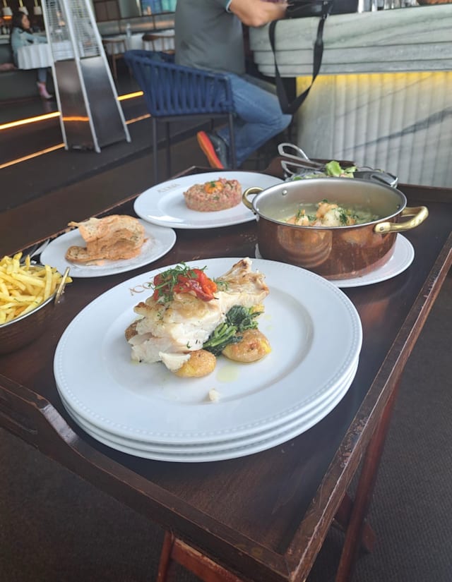 6/10The place is nice but quite cold with no atmosphere, probably better on the terrace in the day. The food was very expensive with small portions for the mains.