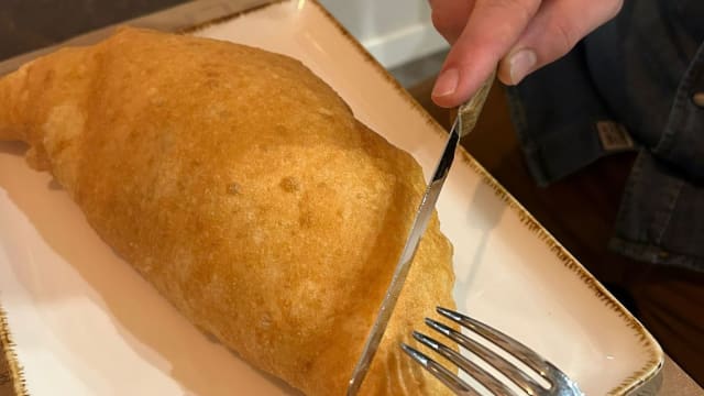Mezzaluna ripiena di crescenza, all' uscita mortadella artigianale bolognese