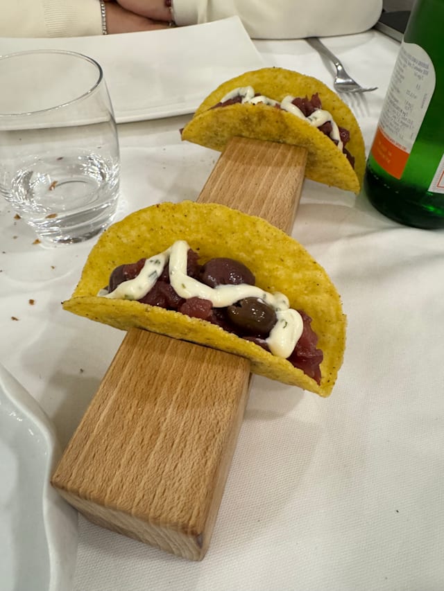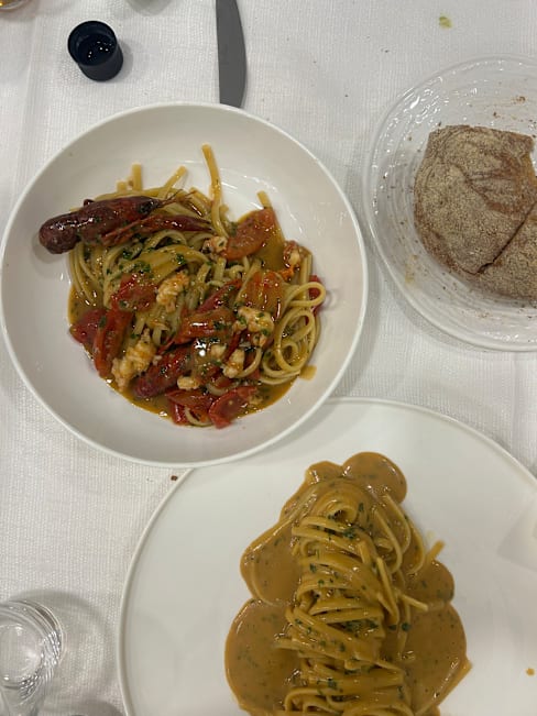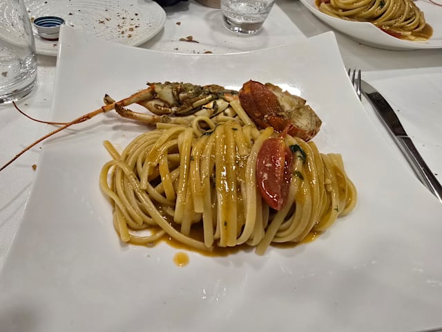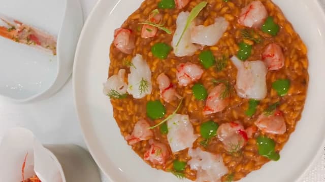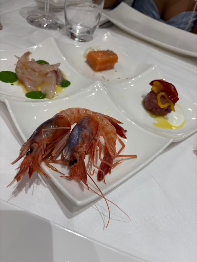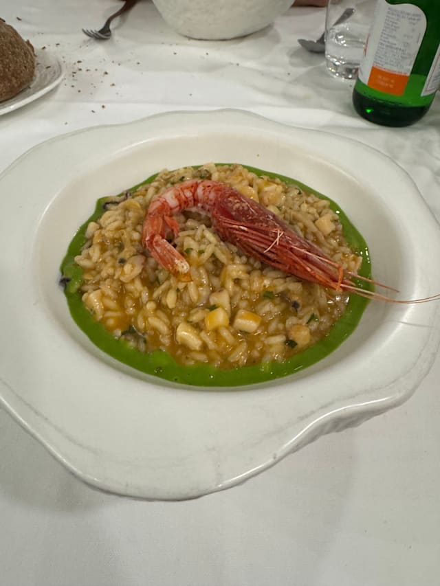 3/10As regular Michelin diners, we were disappointed. The stuffed squid arrived lukewarm, overcooked, and filled with mashed potato—apparently a last-minute substitution for roasted artichoke, creamy pecorino and bread with squid ink. The sauce was tasty, but the dish lacked any real depth. We ordered linguine with sea urchin and shrimp spaghetti; told only one pasta shape could be prepared (literally because they couldn’t be bothered to boil both), so we chose linguine as it wasn’t worth a debate. The urchin pasta was inedibly salty, sent back, and then returned drowned in EVOO—still unbalanced and stripped of flavour. We declined to eat it. Despite this, they insisted we pay for the urchin linguine (which had no actual urchin in by the way). In the end, the chef intervened and reduced the bill slightly. While the shrimp pasta was passable, the experience was marred by poor cookery and very defensive and rude service. Style over substance, and not worth the visit by any means
