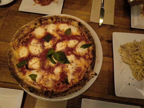 9/10Nice food. Good prices. Friendly staff. You can order via your phone when sitting at the table and they have a nice terrace. Portions are big, so we had to take part of our pizzas home (we ordered the italian cheese/meat entree and we ate it all...).