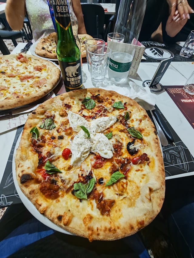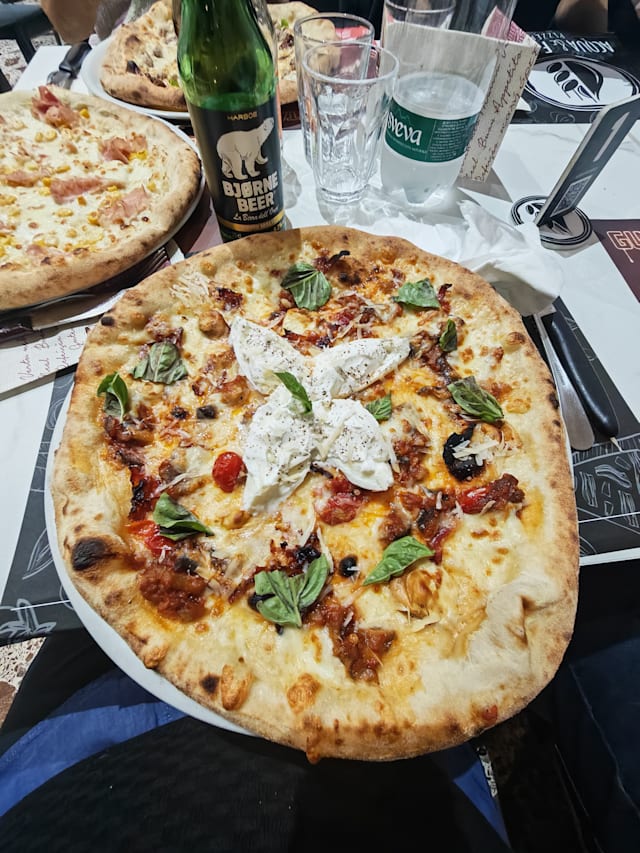 Pomodoro san Marzano, fior di latte, nduja, salsiccia, crema di pomodorini secchi