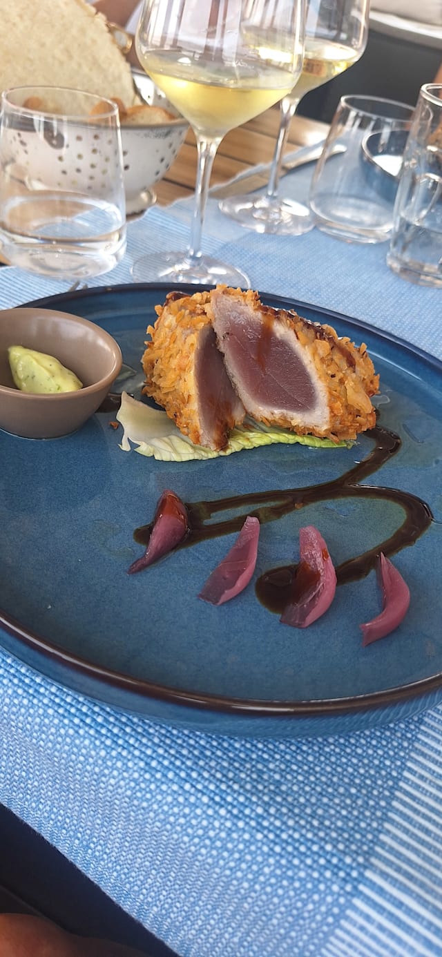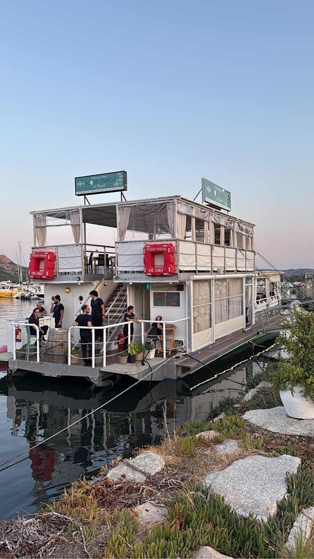 7.5/10This unique restaurant, set on a boat, sitting in the harbour in Cannigione was worthy of the visit, but sadly not for the food alone. Maybe we ordered the wrong thing, but fancied sampling several dishes. We enjoyed a sharing starter - tasty & different, but tiny tasting bits & really not worth the price. 2nd course we chose to share a risotto, again very tasty but fairly small portion & again over priced. Ordered a lovely bottle of wine, expensive, but this is not unusual. Sadly disappointed in a meal that cost nearly €200. We were so looking forward to going & the fact it was Friday evening & they were not full, unlike numerous nearby restaurants, says a lot.