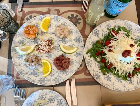 7.5/10Food arrived quickly and hot - which was a surprise based on our service through Siciliy these last 3 weeks. Simple but tasty food! Setting just a little noisy but it was Saturday night...