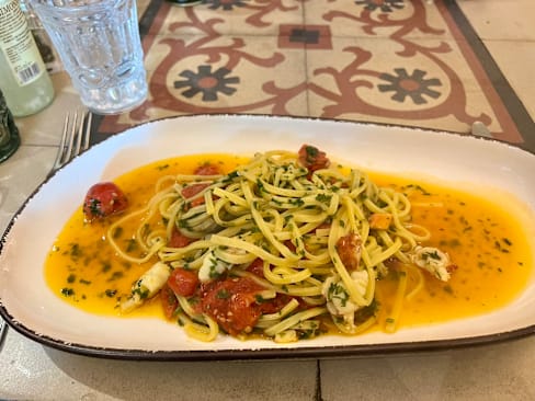 7/10Cute little place within the walls of the city. Waiter was not helpful or courteous. Told us to scan QR code for menu. Menu came up in Italian. Due to restaurant being inside stone walls, internet access was spotty and google couldn't translate to English. Their wifi was spotty. No paper menu. Waiter did not want to assist us in any way and would just walk away. He was very kind and courteous to Italian clients at next table. The waiter also demanded a tip. After 2 weeks in Italy, this was the first restaurant the waiter asked for a tip. Our evening and anniversary dinner was ruined.