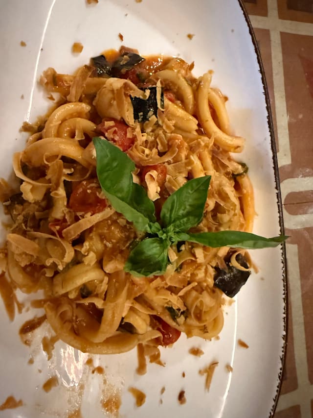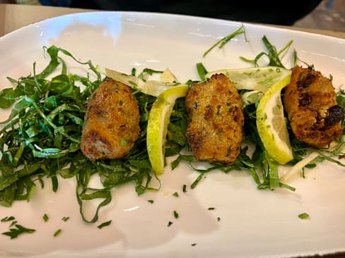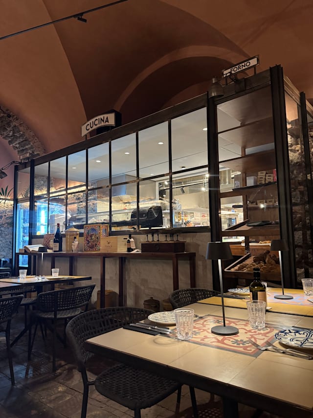 9/10The interior is very attractive and reflects the nature of the city’s history. Our servers were very friendly and attentive. After we ordered our meal warm bread with EVOO was brought and it was yummy. We really enjoyed both our starters - the Polpette di Melanazane and chickpeas fritters with bacala were light and flavorful, perfectly seasoned. We also enjoyed the very abundant casarecce Brontese pistachio cream and fuori Norma (with swordfish) pastas. The wine list has many good choices. Sadly we had no room to try a dessert.