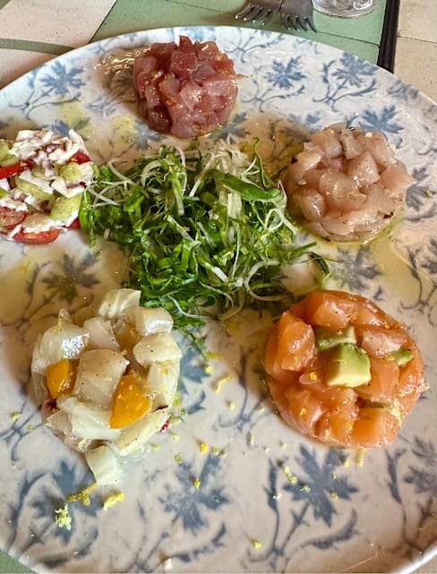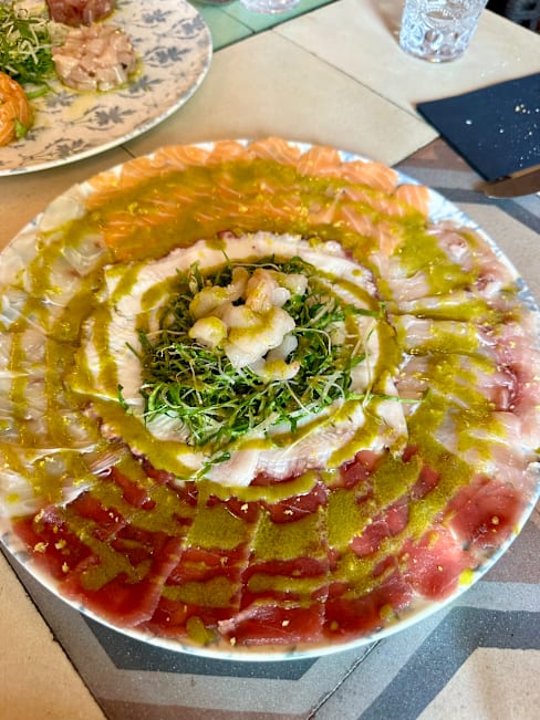 8.5/10Nice experience and amazing food. Had a gran carpaccio and a fettuccine alle vongole. The gran carpaccio had an amazing salmon and gamberetti, tuna was the only one below expectations, but overall a nice experience. They use their own oil, which was also really good. If I need to make a couple of notes: a bit too much salt everywhere and 3 euro for the coperto (service) where there was not even a tablecloth is a bit too much. Definitely recommended for nice fish food at honest price.