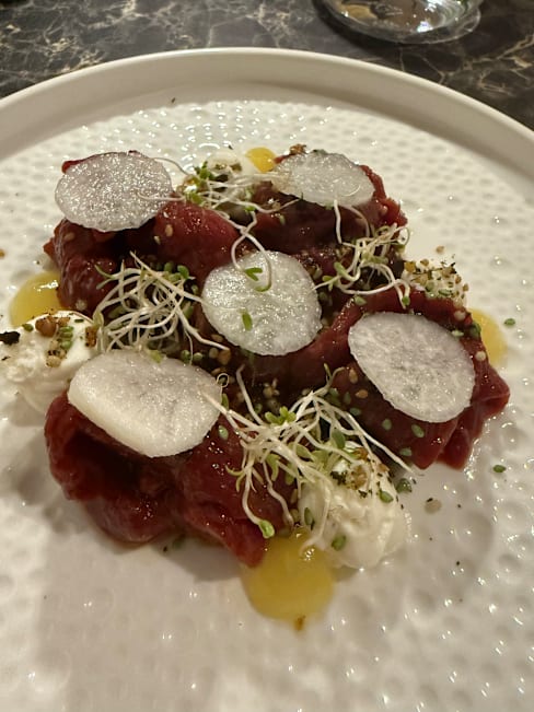 10/10It is a small, elegant Restaurant with well-distanced tables and good jazz in the background not too loud so you can talk. The contemporary international menu has interesting combinations of meat, fish, and vegetarian dishes. Price adequate for the level.