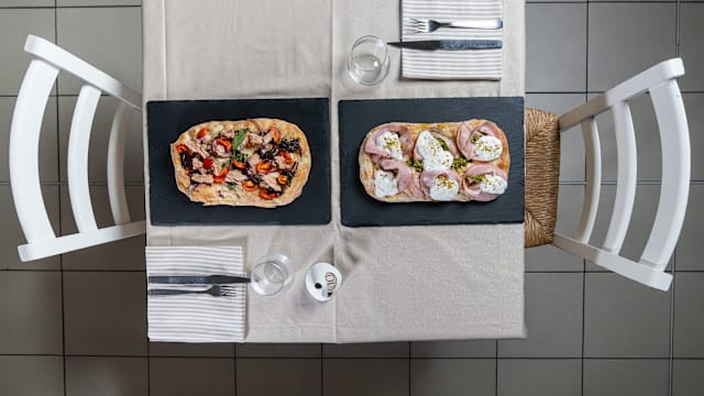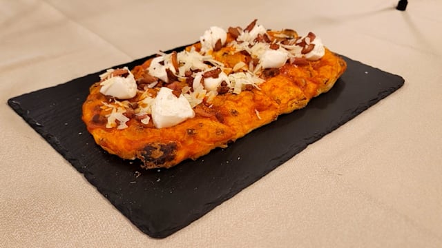 Un’esplosione di gusto con salame piccante, gorgonzola e stracciatella: un mix cremoso e deciso che lascia il segno.