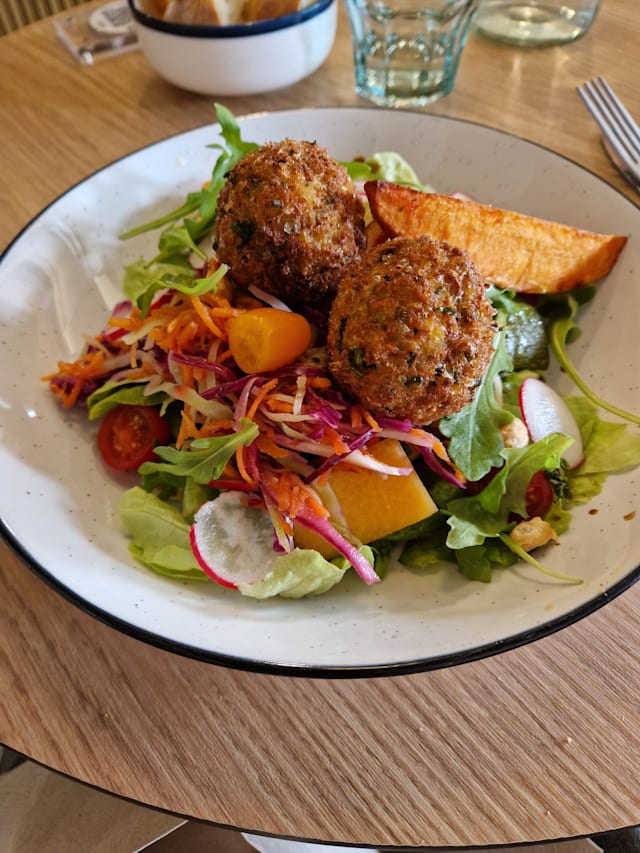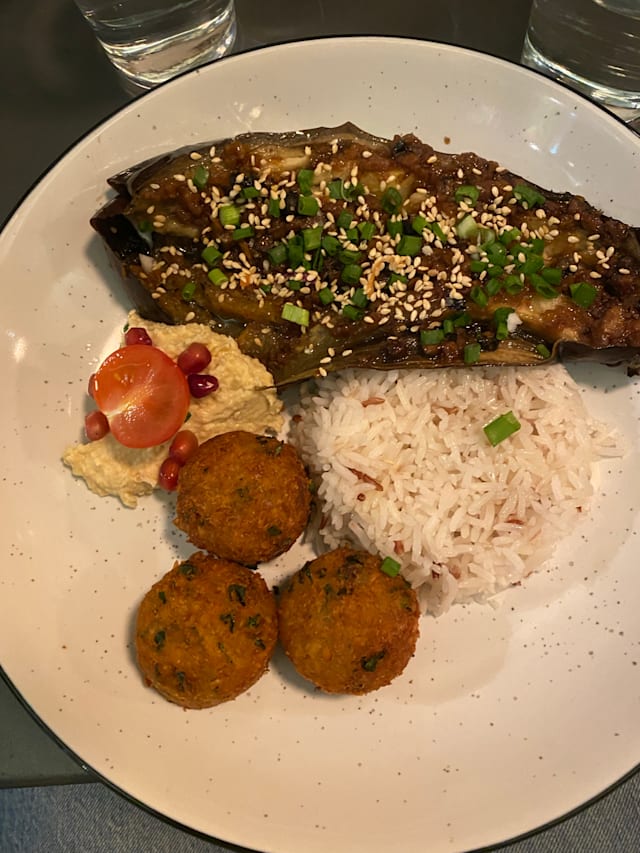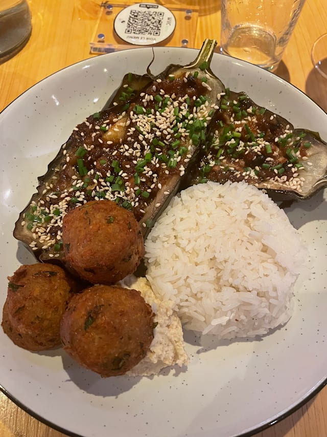 9/10Delicious main courses. I had the Eggplant, falafel, hummus and Quinoa-rice blend and all were outstanding. The chef was good enough to share the recipe for the eggplant, which I will try to reproduce when we get back to the states. My husband had the plat du jour( sweet potato mash, cauliflower and falafel) and literally cleaned his plate. We were too full to order dessert, but I have my eye on the carrot cake for next time. This is a hidden gem of a restaurant. I’m glad we found it.