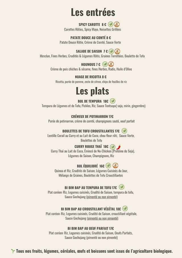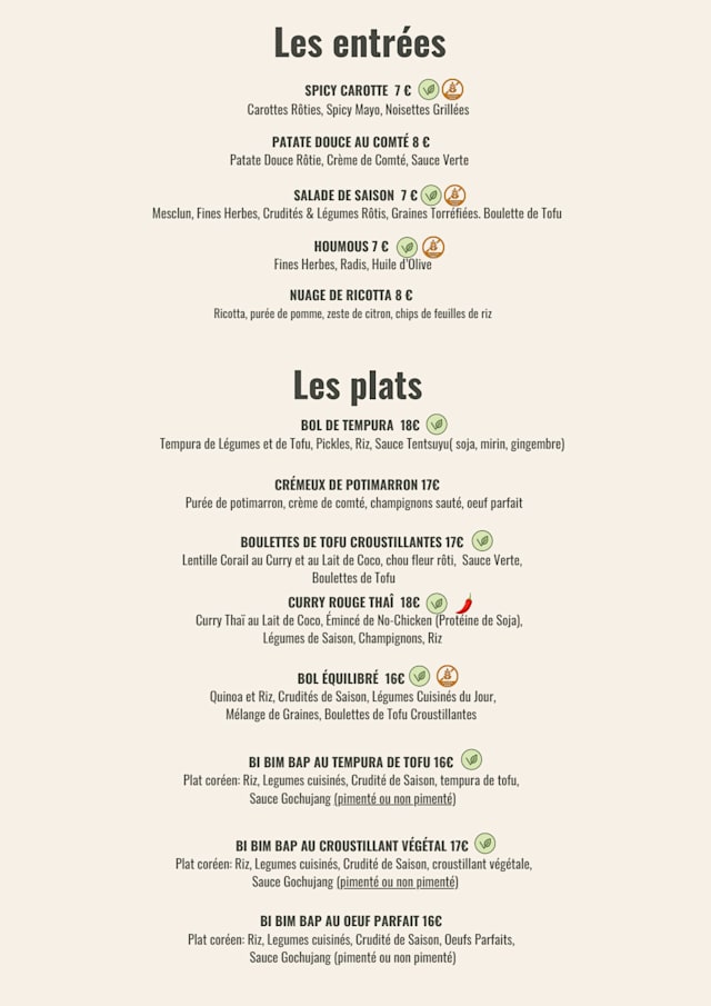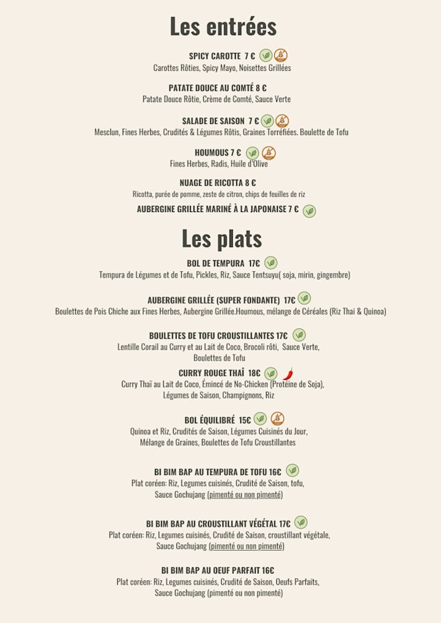 9.5/10The vegetarian food is delicious and very well prepared. The waiter was very kind. Location make the restaurant very accessible from everywhere. Decoration nice and sober.